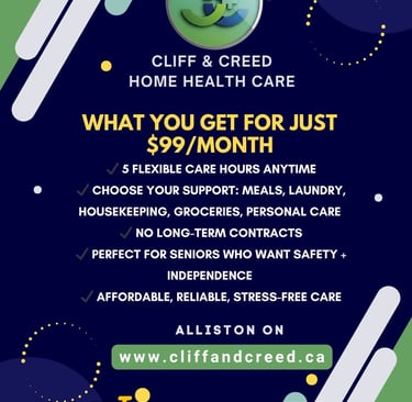 At Cliff & Creed Home Healthcare Inc., we are dedicated to providing compassionate care that promotes dignity and independence for seniors in Barrie and surrounding areas.